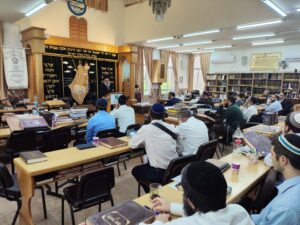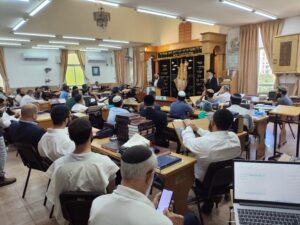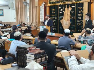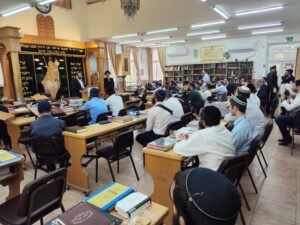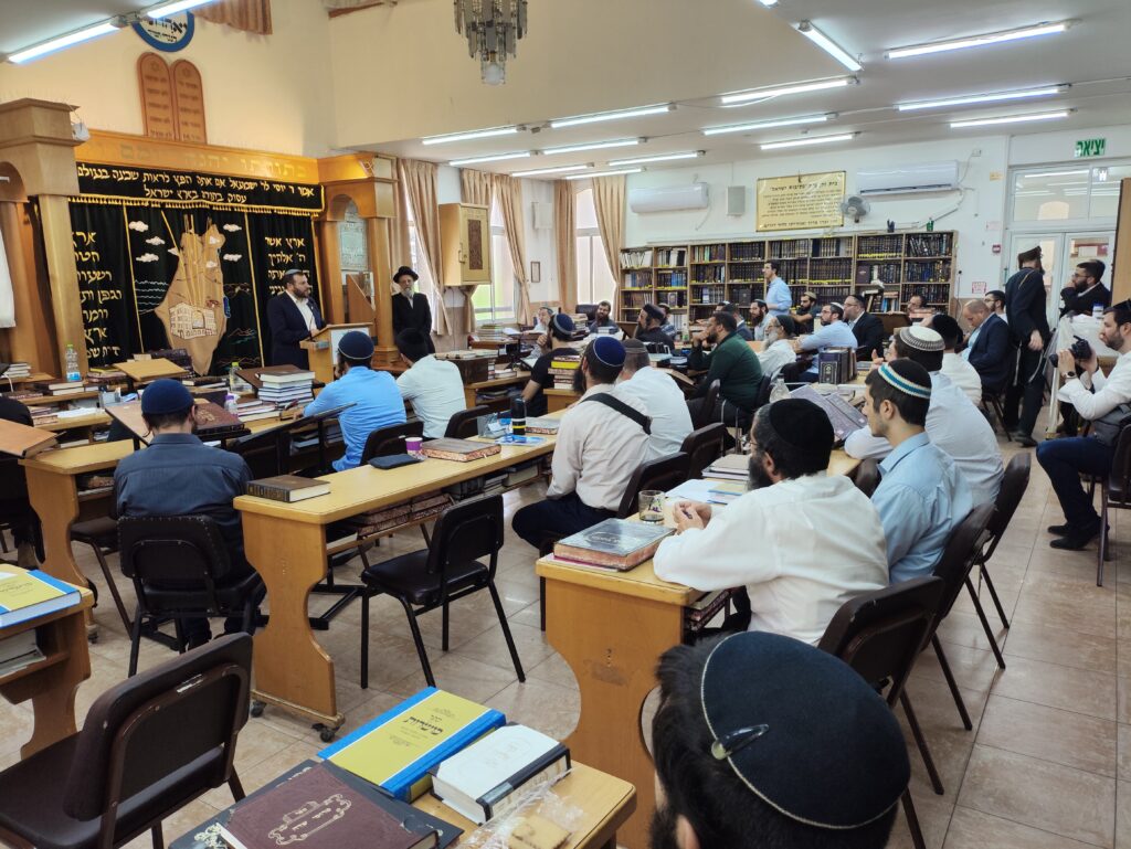 לאחר שיחה עם ראש הישיבה השר העביר שיחה קצרה בבית המדרש, ובה דיבר על הכוחות הנדרשים בבית המדרש להמשיך ולגדול בתורה, ועל הצמא הגדול ברחבי הארץ והעולם כולו לתורה הגדולה הנלמדת בבית המדרש.